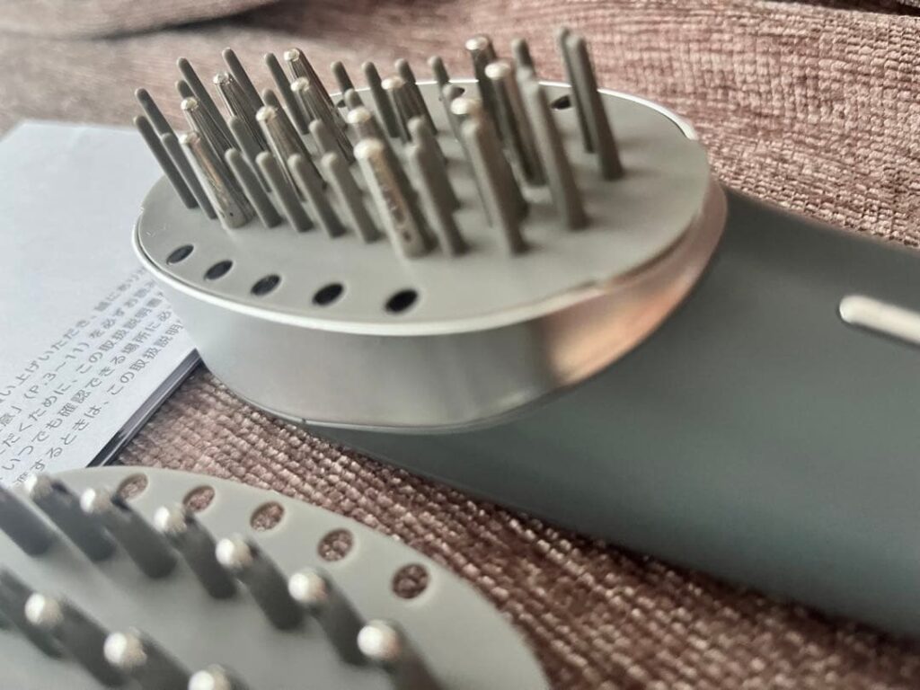 体験初日、ブラシを頭皮に当てると、EMSの刺激で頭皮がピリッと反応。