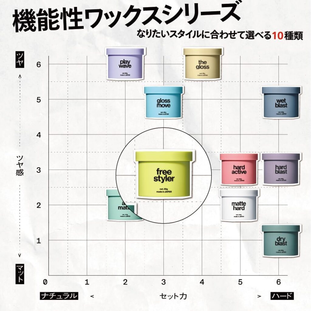 各タイプの特徴と向き不向きを理解しておくことで、このワックス合わない…」という失敗を減らすことができます。