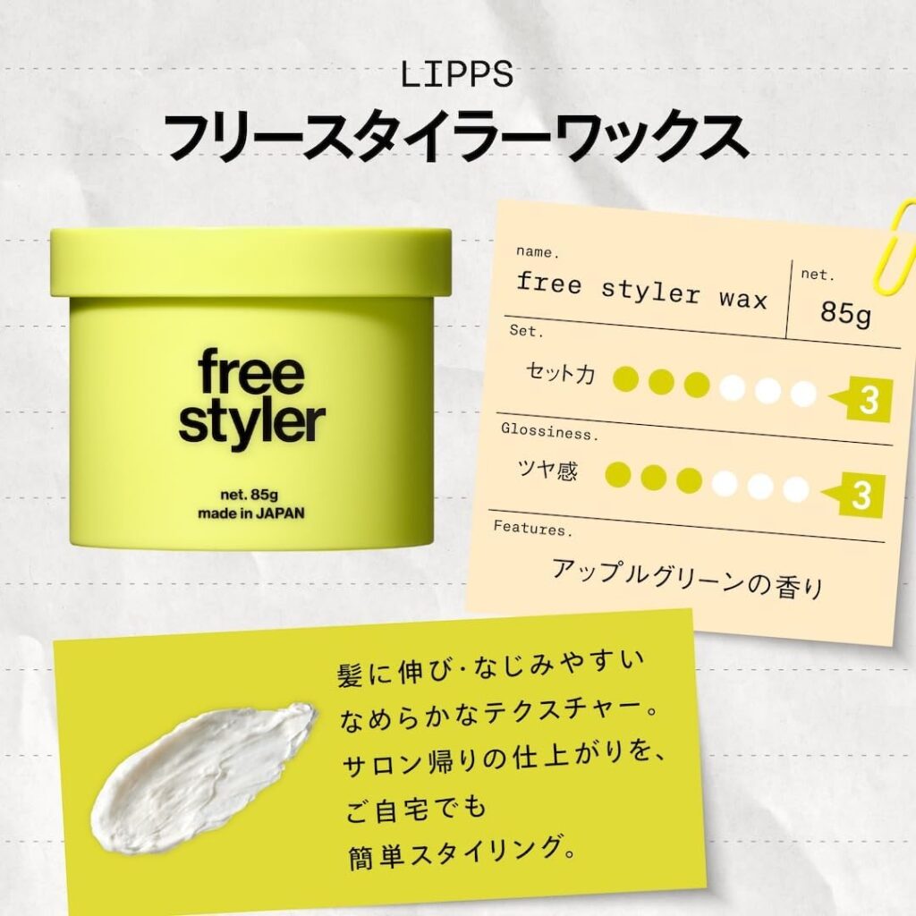 水で濡れたような瑞々しいツヤ感を出せます。ワックスが少し固いですが、慣れたらどうということはありません。セット力も悪くなく、シャンプーで落としやすいのはありがたいです