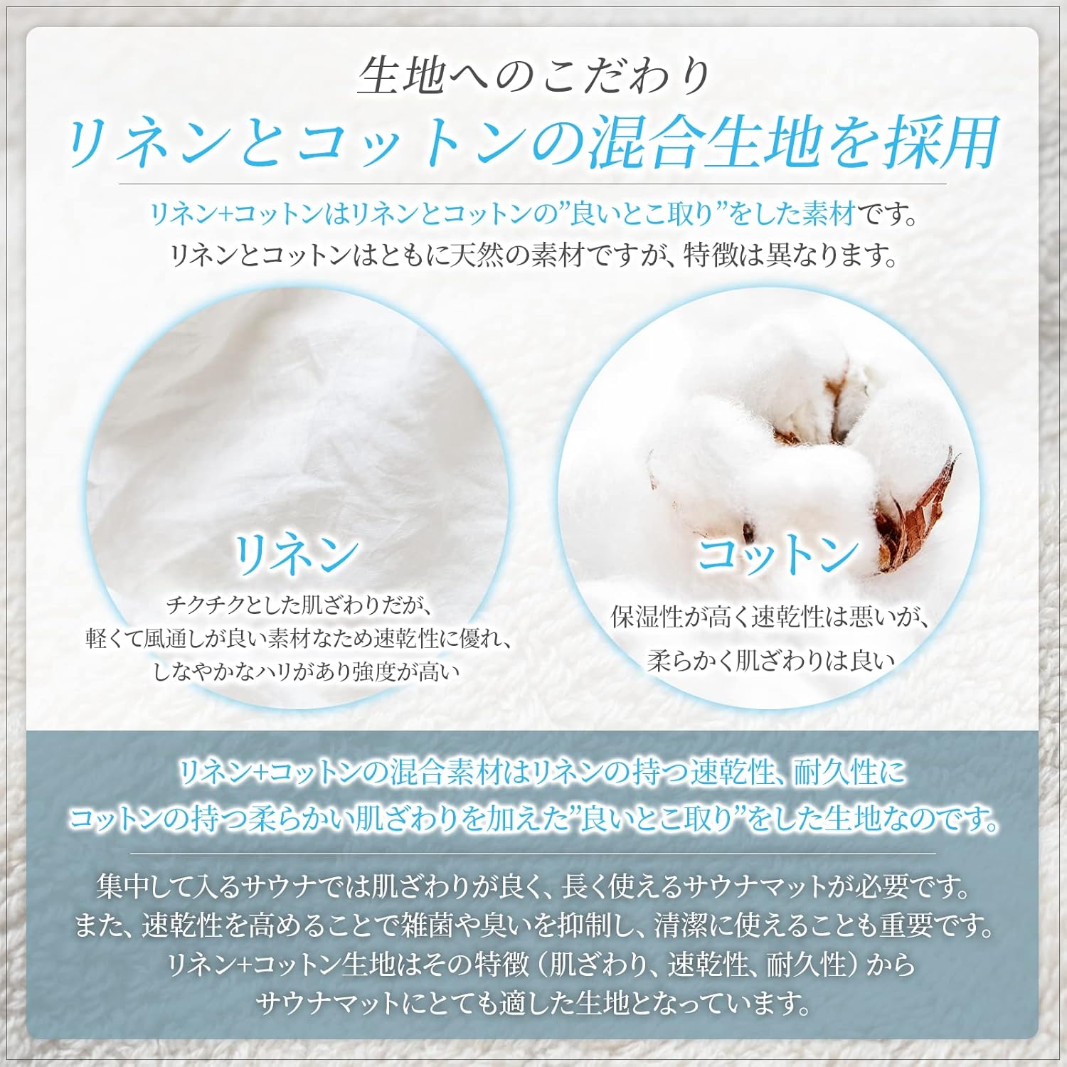 上質な羊毛を使用するなど、サウナでの快適さを追求したこだわりの製品。