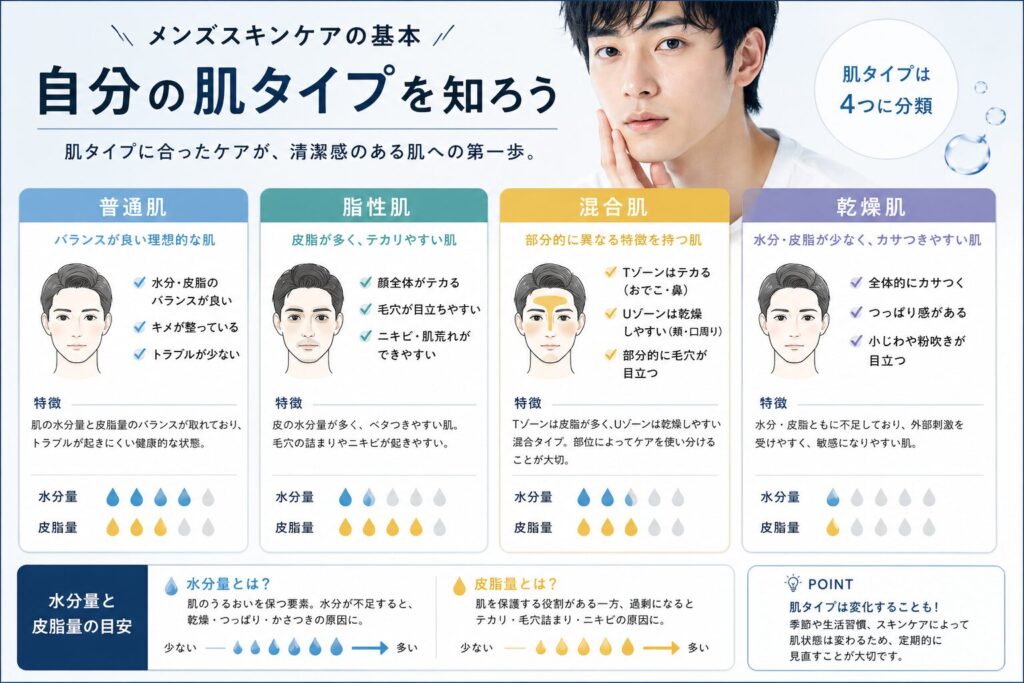 男性が目指すべきは、肌トラブルが少なく健やかな肌とされている普通肌。