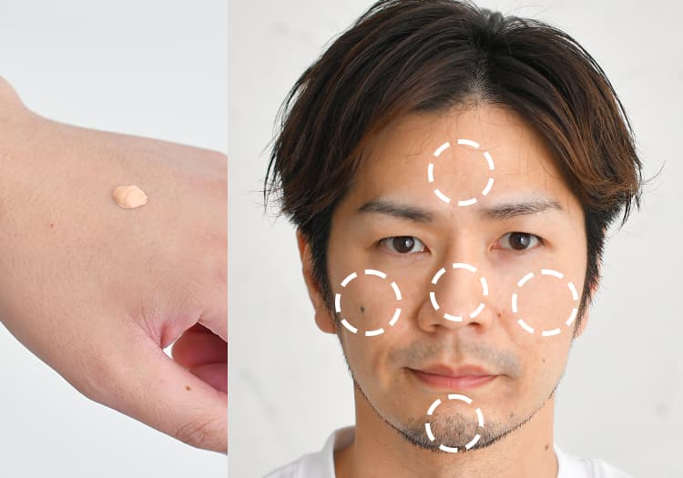 STEP1:適量を顔の上に5箇所ほど点で置く